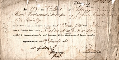 Billede: 1858. Dåbsattest.