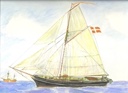 | Tjalk "Poul & Anna". Kendingsbogstaver NJRT. Bygget 1864 i Rhauderfehn. 37 17/100 tons. Registreret i Thisted 18. marts 1873. Købekontrakt Nykøbing Mors 17. marts 1876. Ejere: J. Nielsen, Handelsbetjent, Thisted med 1⁄2 part. C. Wegeberg Christensen, Skibsfører, Taabel, Vestervig med 1⁄2 part. Solgt til Aalborg ca. 1882-83. (Ikke fundet). Skipper Christen W. Christensen med næringsbevis som sætteskipper dat. 12. marts 1862, Hassing Revs Herred, Thisted Amt. Blev fører af "Poul & Anna" 8. juni 1877. "Poul & Anna" blev i 1876 ført af Carl Christian Leerhøy. - På forespørgsel om, hvor originalmaleriet befinder sig, svarede Erling Leerhøy 18/2-2005: "... du vil godt vide noget om maleriet, jo jeg ved hvor det var for 30-40 år siden, men ikke hvor det er nu. Ang. så kan jeg i Danmarks skibsliste for 1917 se, at dengang eksisterede "Poul & Anna" og "Petrine" stadig". (Foto af "Poul & Anna" med undertekst: Capt. C. W. Christensen (Maleri af V. Arnesen, 1880, Limfjordsmuseet). Maleren Vilhelm Carl Ferdinand Arnesen blev født i Flensburg 25.11.1865 og døde i København 24.03.1948. (Weilbach, Dansk kunstnerleksikon) Skibet var opkaldt efter Poul Debel i Varde, der var korresponderende Reder, og hans hustru Anna. Peder Larsen (10. april 1838 - 9. nov. 1916) tog styrmandseksamen fra Fanø Navigationsskole i 1864 og var skipper på "Poul & Anna" i perioden 1867-1876, (Kilde: Torben Klinting: Fra Jyllands Vestkyst, 1930) Danmarks skibsregister 1871: På hjemmesiden www.fynhistorie.dk er der tilgængeliggjort en liste over alle 2090 registrerede danske handelsskibe i 1871 (over 15 registertons). Foruden skibets navn og eventuelle oplysninger om skibstypen er også anført, hvem der var skibets fører/ejer*. For de af skibene, som er hjemmehørende i Svendborg, Rudkøbing, Assens eller Fåborg, er der yderligere oplysninger om skibenes byggested, byggeår, byggemateriale (trætype), skibenes dybdegang og størrelse målt i registertons. Nr. Signal - Navn - Fører - Side 1720 - Paul & Anna - P. Larsen - 62 Kuf "Petrine". Drægtig 9 3/4 danske Commercelæster. Kendingsbogstaver NHCM. Længde 41,6' Bredde 12,3' Dybde 5,1'. Lastede 20 tons. Indført fra Norge 1824 under navnet "Den flyvende Engel". Akvarel af Rasmus Henrik Kruse findes på Dansk Folkemuseum. Kilde og foto: Skudefart og Limfjordshandel, side 10. "Solgt i 1857 til brødrene C.W. og Ole Christensen. Skjøde fra Ole Christensen eller Ole Chr. Wegeberg til Nicolaj Andersen paa 1⁄2 Part i Slupskibet "Petrine" med Redskaber, dat. 19/2. læst 3/3. 1868." Akvarel (60cm*46 cm) af "Petrine af Thisted" med undertekst: Capt. C. W. Christensen, malet 1880 af V. Arnesen, er i familiens eje. Danmarks skibsregister 1871: Nr. Signal - Navn - Fører - Side 1746 - Petrine (slup) - C. W. Christensen* - 62 Den danske Skibsmaaling efter "Commercelæster" á 150 Kubikfod var gjældende, indtil Loven af 13de Marts 1867 indførte "Register Tons" à 91,59 Kubikfod = 100 Cubicfeet (2,83 kubikmeter) efter den engelske Maalemethode af 1854, hvilken i alt væsentligt blev antagen af næsten alle søfarende Nationer. Kilde: "Fra Hjulskibenes dage" 1919, side 133. Skipper Christen Wegeberg Christensen fik næringsbevis som sætteskipper dat. 12. marts 1862, Hassing Revs Herred, Thisted Amt. Klara Kristiane Lerhøj er i folketælling 1. feb. 1880 noteret som plejedatter hos hendes morfar og mormor: "Thisted, Refs, Vestervig, Taabel By, 12. hus, FT 1880. Kristen Vegeberg Krestensen, 60 år, Gift, Husfader, Skipper, V.Vandet Sogn, Th. A. Mariane Krestensen, 60 aar, Gift, hans hustru, Thilsted Sogn, Th. A. Klare Kristiane Leerhøi, 3 aar, ugift, deres pleiedatter, her i sognet" Vester Vandet kirkebog: Christen f. 26/2-1820. (Christen Christensen Brandi Wegeberg) Forældre: Huusmand og Søe Limith nr. 18 Christen Christensen Brandi og Hustru Maren Christensdatter (Høi) af Klitmøller. |